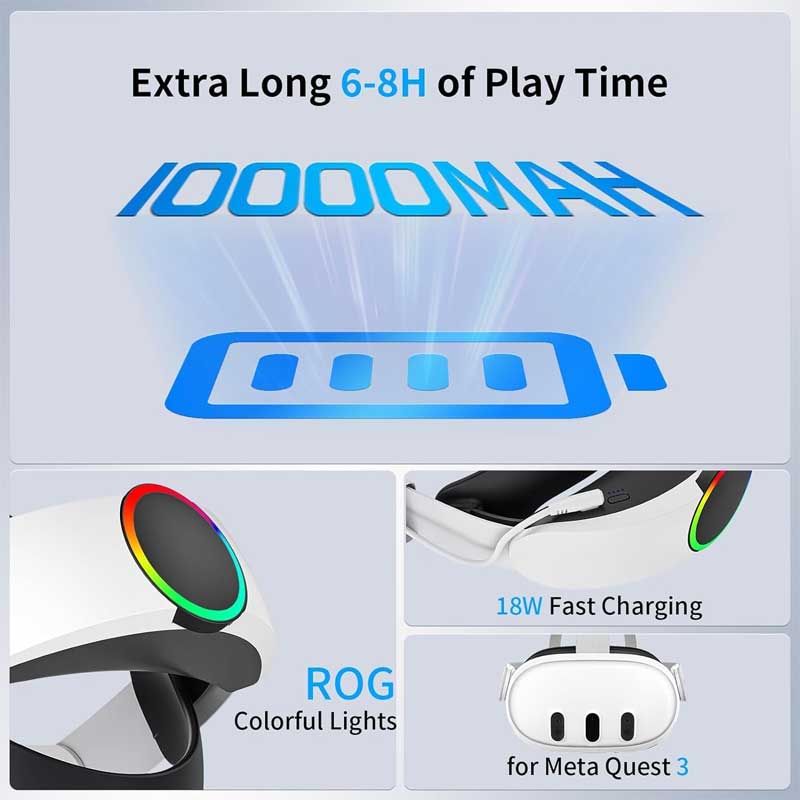 هدبند باتری برای Quest 3 و Quest 3S یک لوازم جانبی مهم است که تجربه واقعیت مجازی شما را بهبود میبخشد. این هدبند با ظرفیت 10000mAH، امکان بازیهای طولانیتر تا 4 تا 6 ساعت را فراهم میکند، بدون نیاز به شارژ مکرر. طراحی ارگونومیک و راحت آن، حس راحتی را حتی در استفادههای بلندمدت تضمین میکند. نصب آسان و سریع، از دیگر مزایای آن است که کاربران را از دردسرهای پیچیده نجات میدهد. علاوه بر این، این هدبند قابلیت اتصال به لوازم جانبی مانند متا هالو و چراغهای ROG را دارد، که باعث افزایش جذابیت و تجربه بصری در حین بازی میشود. در کل، این محصول گزینهای عالی برای کسانی است که به دنبال افزایش زمان بازی و راحتی در استفاده از هدستهای واقعیت مجازی هستند.