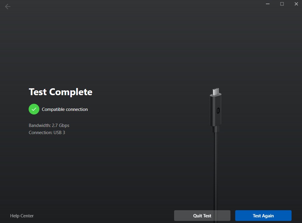 تصویر زیر مربوط به تست پهنای باند واقعی این کابل در محیط برنامه متا کوئست ویندوز می باشد :